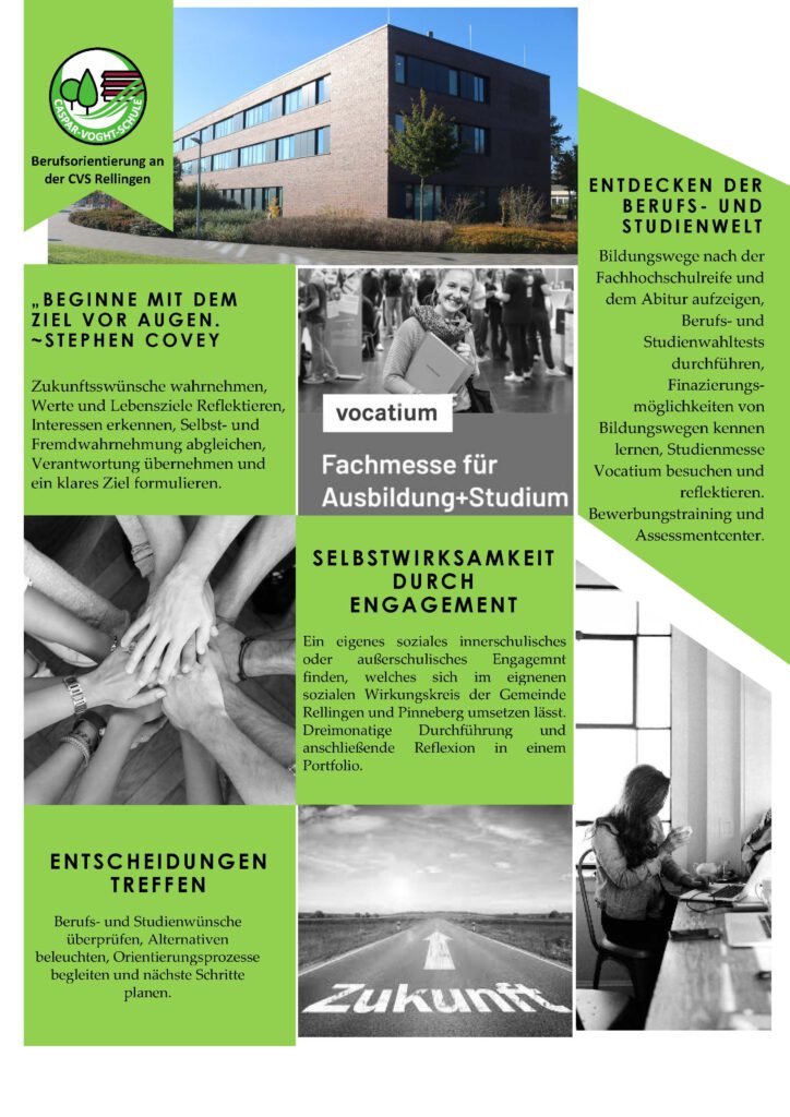 Das Engagement an der CVS zählt neben Demokratie und Nachhaltigkeit zu den profilübergreifenden Grundbausteinen und wird durch das Fach Berufsorientierung (BO) begleitet. Zwischen den Herbst- und Osterferien engagiert ihr euch für euch selbst und die Schulgemeinschaft. Erweitert eure Sozialkompetenz, entwickelt eure Persönlichkeit indem ihr Verantwortung für euch und andere übernehmt. Definiert eure Werte und die unserer Schule aktiv.